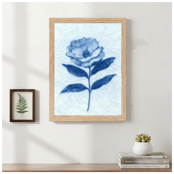 Cuadro enmarcado y con vidrio, listo para colgar. El marco es de madera de pino, así que podés pintarla del color que quieras o dejarlo en madera.