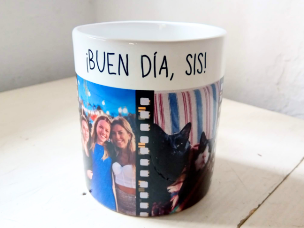 Guardá tus mejores momentos en una taza que podés usar todos los días. Este diseño permite personalizar 4 fotos, creando un collage tipo carrete de película que transmite emociones y recuerdos reales.