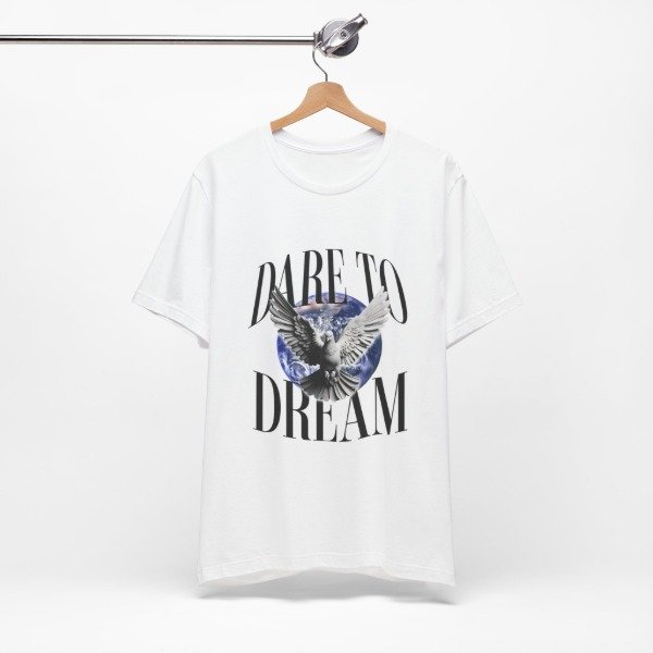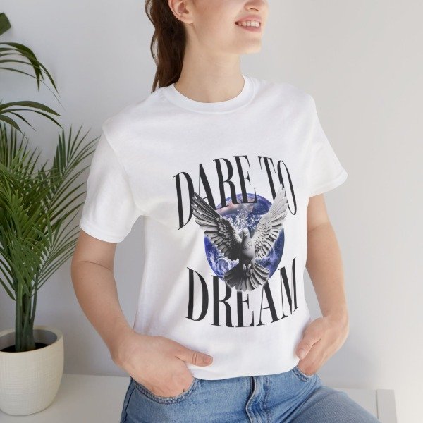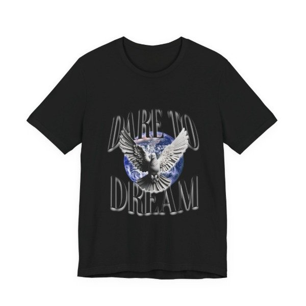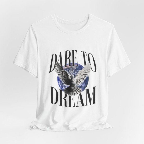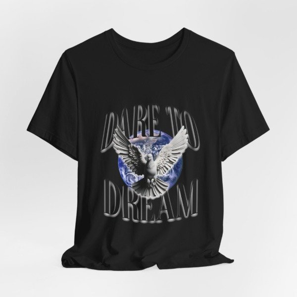 Esta remera combina un diseño impactante con un mensaje que inspira: atreverte a soñar, a volar alto y a creer en lo que parece imposible. La paloma en pleno vuelo sobre el planeta simboliza libertad, esperanza y nuevos comienzos.