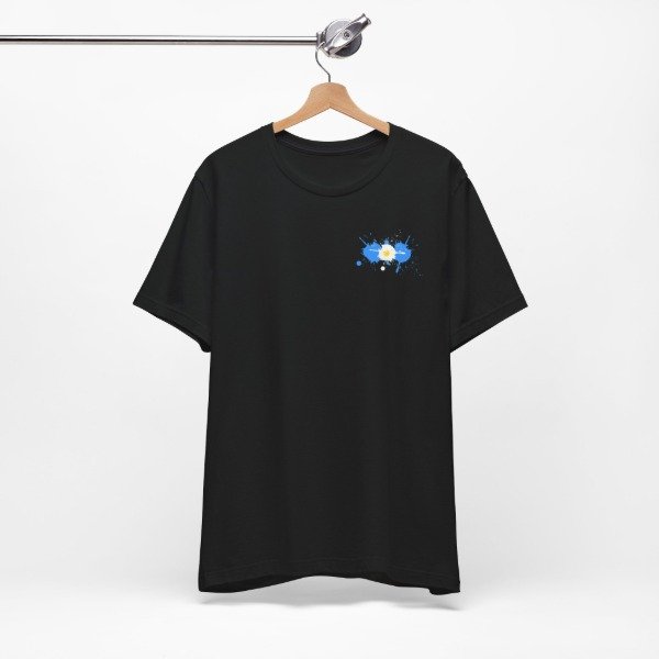 Pasión que se lleva puesta. Esta remera unisex celebra a la Argentina con un diseño artístico de la bandera nacional en forma de pintura, transmitiendo emoción, identidad y orgullo. Pensada especialmente para alentar en el Mundial de Fútbol 2026, es ideal para quienes viven el fútbol con el corazón y sienten los colores en cada partido.