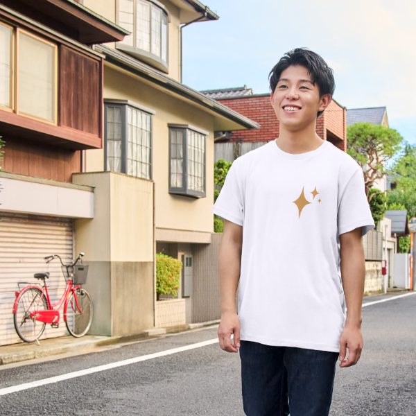 Remera unisex de estilo minimalista con un sutil símbolo en tono dorado que representa apoyo a la innovación, la creatividad y la inteligencia artificial. Un diseño limpio y elegante, pensado para quienes creen en la tecnología como motor de cambio y evolución.