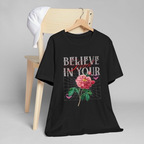 Con un estilo urbano, mezclando el diseño futurista con la naturaleza, esta remera te invita a creer en lo que tu corazón siente.