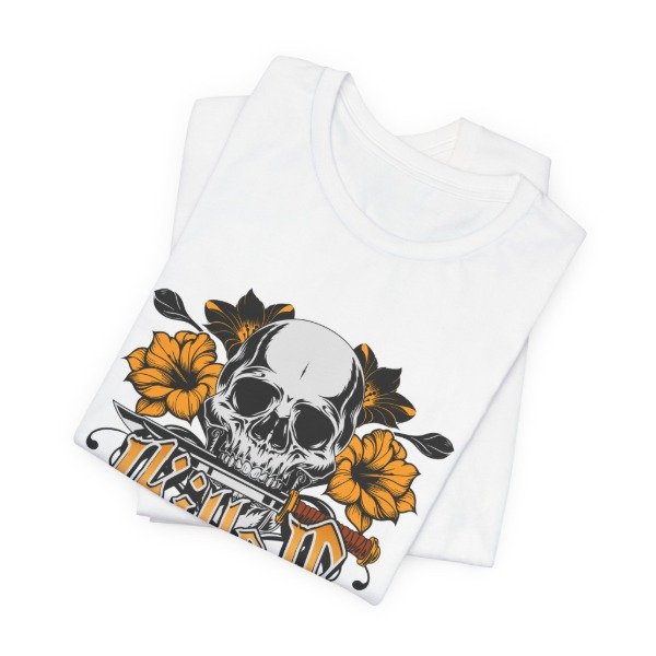 Diseño impactante que combina una calavera detallada con flores vibrantes para un look fuerte, moderno y lleno de actitud. Perfecta para quienes aman el estilo rocker con un toque artístico. Suave, cómoda y con un estampado que no pasa desapercibido.
