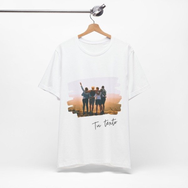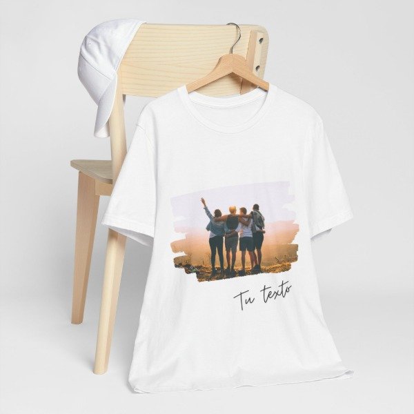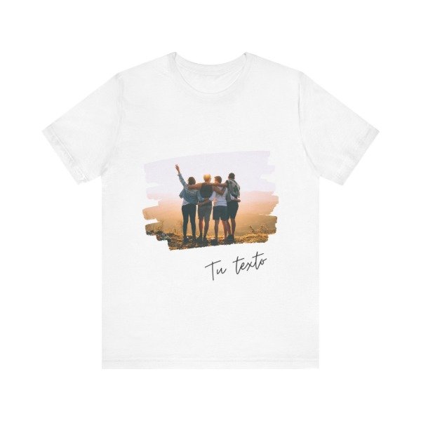 Llevá tus momentos favoritos a donde vayas 💛 Esta remera permite estampar una foto especial y agregar el texto que quieras, con un diseño artístico de estilo brush strokes que le da un toque moderno, único y emocional.