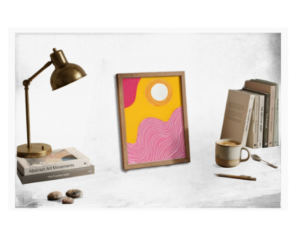 Transformá tus espacios con esta lámina impresa abstracta 15x21 cm, una pieza de arte moderno y minimalista que combina colores vibrantes como amarillo, rosa y blanco, ideal para aportar estilo y personalidad a cualquier ambiente.