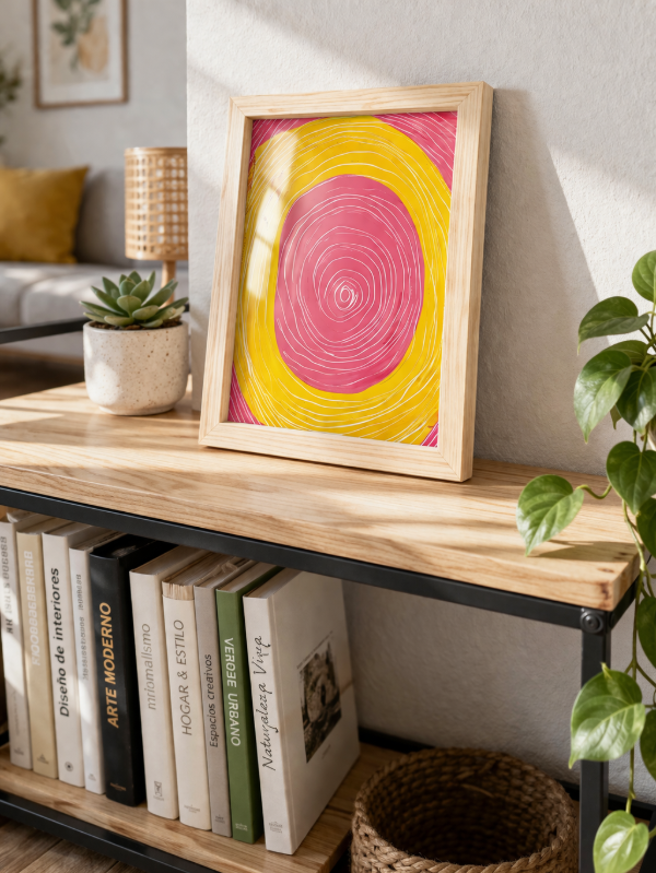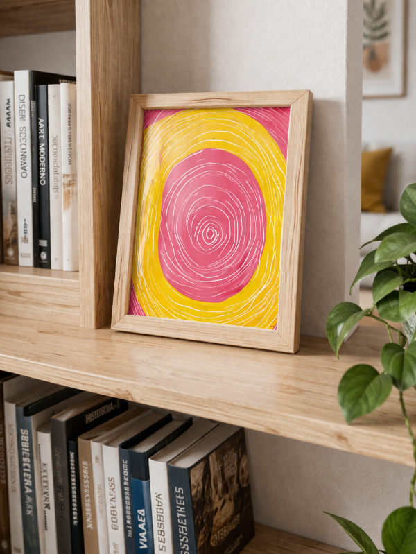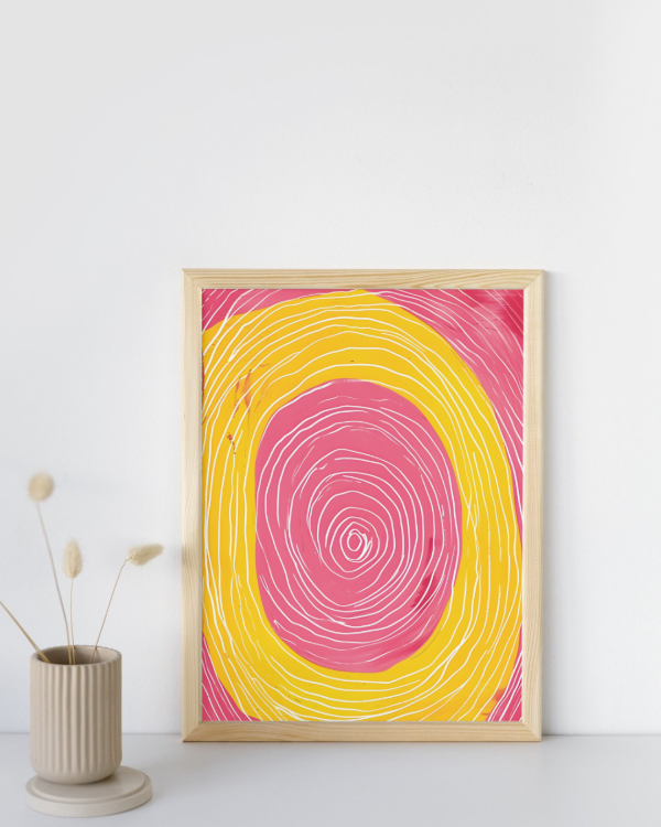 Transformá tus espacios con esta lámina impresa abstracta 15x21 cm, una pieza de arte moderno y minimalista que combina colores vibrantes como amarillo, rosa y blanco, ideal para aportar estilo y personalidad a cualquier ambiente.